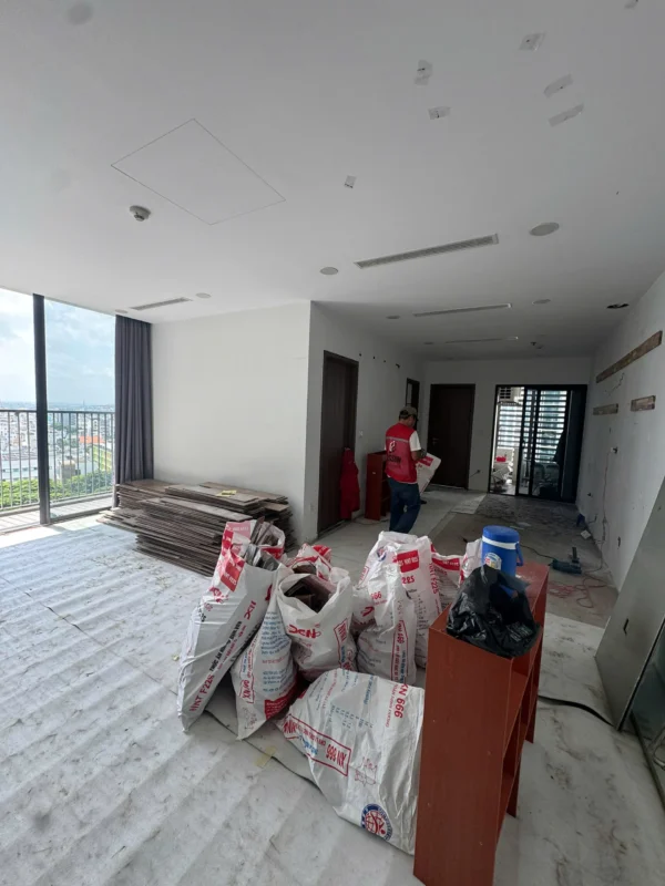 Bàn giao mặt bằng sạch, sẵn sàng cho giai đoạn lắp đặt nội thất (tủ bếp, tủ áo, giường, kệ TV…).
